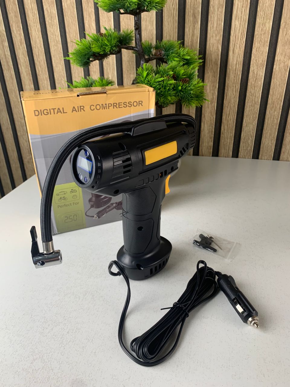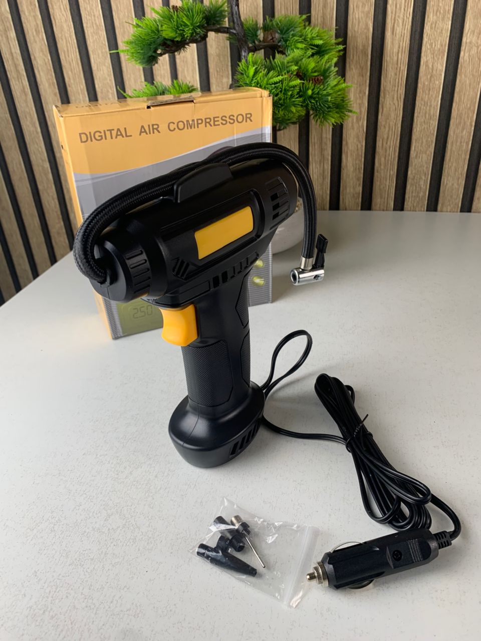 تم تصميم هذا الكمبريسور الكهربائي للسيارة ليمنحك حلاً سريعًا وفعّالًا لنفخ الإطارات في أي وقت وأي مكان. بفضل مسدس النفخ المدمج مع شاشة LED، يمكنك مراقبة ضغط الهواء بدقة حتى أثناء الليل 🌙.