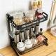 【Grande capacité et robuste】 Design à 2 niveaux. Taille totale de l’étagère à épices : 41*24*38cm, charge totale jusqu’à 15 kg. Le fond de l’étagère est équipé de 4 patins en plastique, antidérapants et plus stables.【Accessoires pratiques】 Equipé d’un support pour couteaux, planche à découper, 3 crochets amovibles. Parfait pour organiser la plupart de vos épices, herbes, pots, canettes et bouteilles, il permettra de réduire beaucoup d’encombrement sur votre plan de travail ou votre plan de travail et de le garder bien rangé.【Antirouille et étanche】 L’organisateur de cuisine est fabriqué en acier inoxydable, il maintient la brillance du produit dans un usage quotidien. Pas de résidus d’eau, antirouille, résistant à l’humidité, aux rayures et à la corrosion.【Large gamme d’utilisation】 Répond à différents besoins, idéal pour la cuisine, la salle de bain. Convient pour le stockage des épices, des pots, des bouteilles, des condiments, des ustensiles de cuisine ou des articles ménagers, tels que des serviettes de bain, des lotions, des cosmétiques, du savon, du shampooing, etc.【Facile à assembler】Le colis est livré avec tous les outils et matériel d’installation nécessaires. Instructions d’installation détaillées, simples et claires pour une installation facile.Paramètres du produit :Nom du produit: étagère de cuisine/support mural d’épices/support de rangement multifonction/organisateur de cuisine/support d’ustensiles de cuisineMatériau du corps: acier inoxydableCouleur du produit: noir