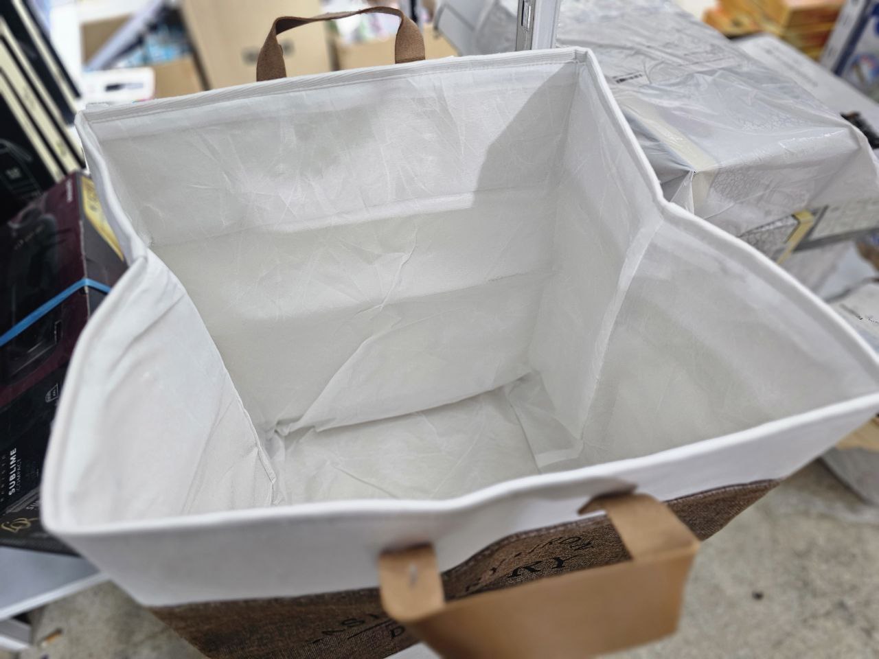 Mesure : 35 cm x 35 cm x 56 cm (H)Couleur : blanc et marron.Matériel: coton lin, cuir PU, EVA