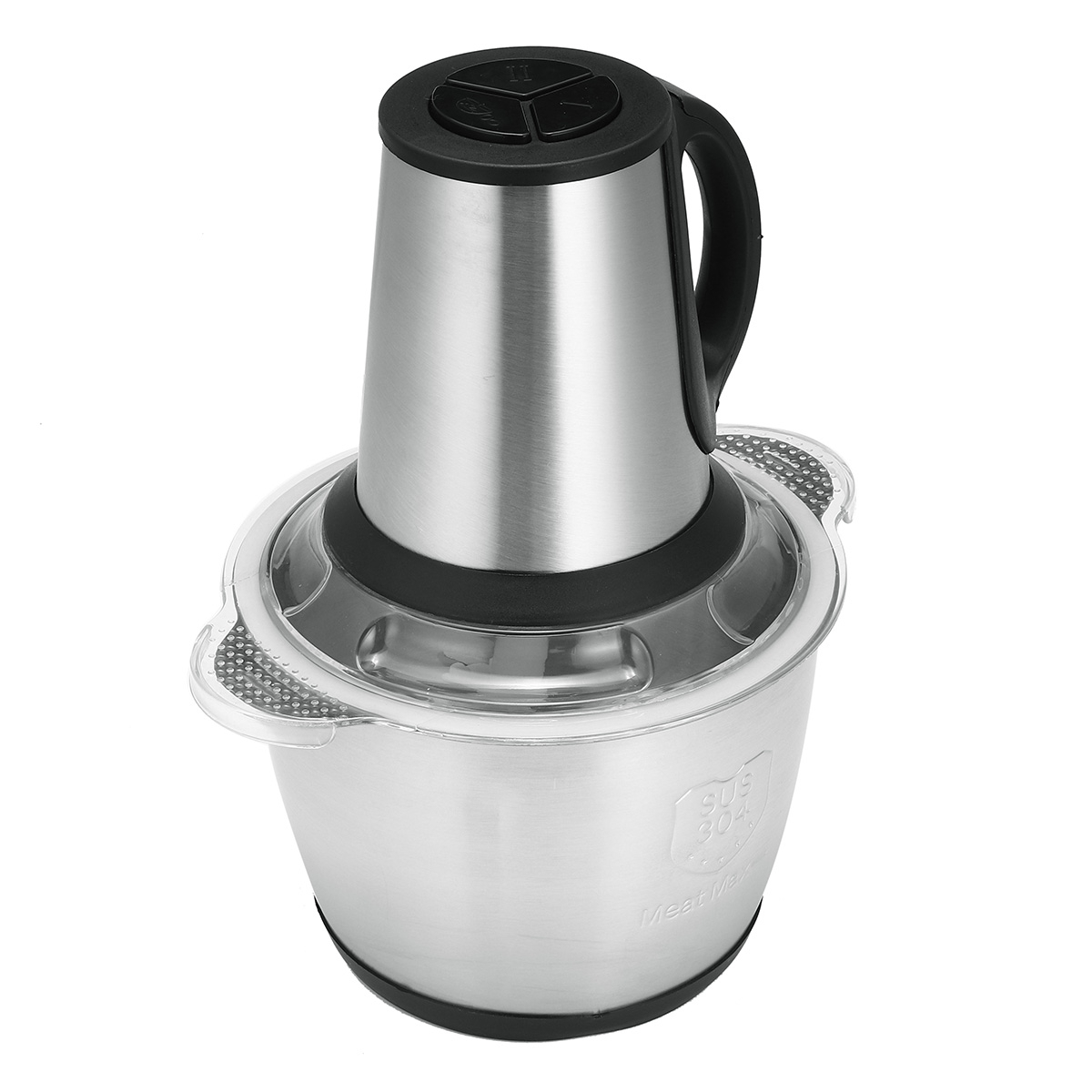 Matériel principal: acier inoxydableTension:220VCapacité:3L 300WLames:4-lames tranchantesTaille: 22cm x 22cm x 28.5cmCaractéristiques:Matériau en acier inoxydable de qualité alimentaire 304, durable et résistant aux rayures, bon pour votre santé.360 degrés tout autour hacher la viande en seulement quelques secondes, obtenir des résultats de traitement parfaits.Lame tranchante en forme de S à Double couche, broyée en spirale uniformément. Conception de la lame en spirale, lame tranchante à 4 lames, écrasement en tourbillon multicouche.3 contrôle de vitesse. Avec le contrôle de vitesse haute et basse, le hachoir électrique vous permet de sélectionnet librement un contrôle précis pour produire une texture parfaite de vos ingrédients.La grande vitesse est bonne pour les viandes, les noix, les carottes, la citrouille;La vitesse lente est appliquée pour les œufs, les légumes, les fruits, etc.