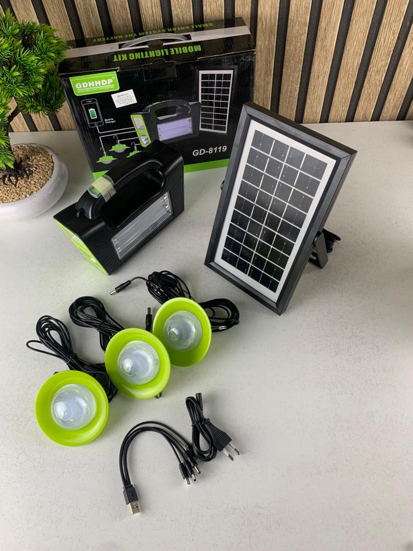 Kit Panneau Solaire portable avec Torche LED Rechargeable et 3 Lampes – طقم مصباح يعمل بالطاقة الشمسية