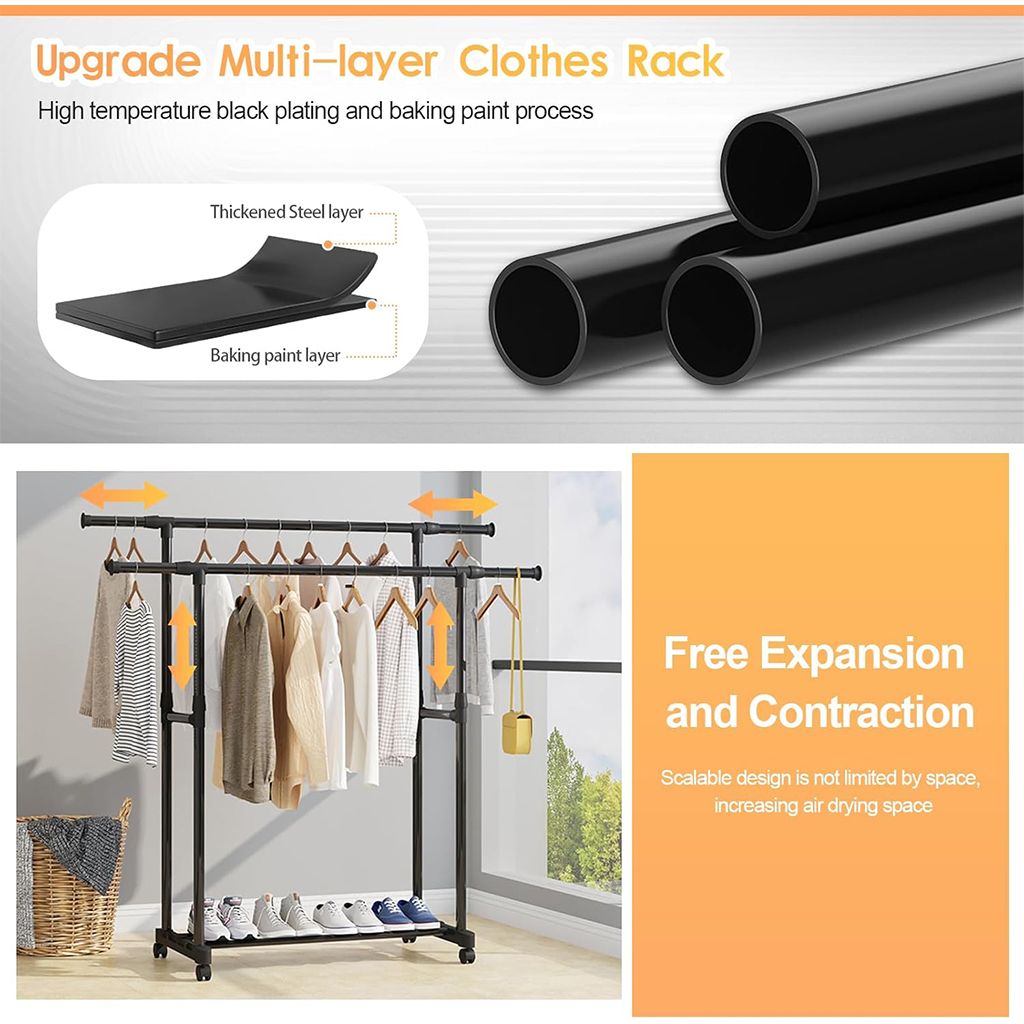 – Double porte-vêtements: idéal pour organiser et créer un espace de rangement dans votre buanderie, votre chambre ou votre dortoir étudiant.