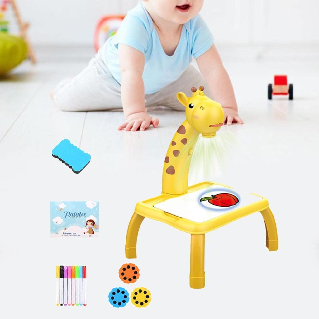 Offrez à votre enfant un jouet éducatif et amusant avec ce projecteur de dessin interactif en forme de girafe. Il permet aux enfants de dessiner et tracer des images facilement grâce à des projections lumineuses. Doté d'une fonction musicale intégrée, il stimule la créativité et l'apprentissage tout en s'amusant.