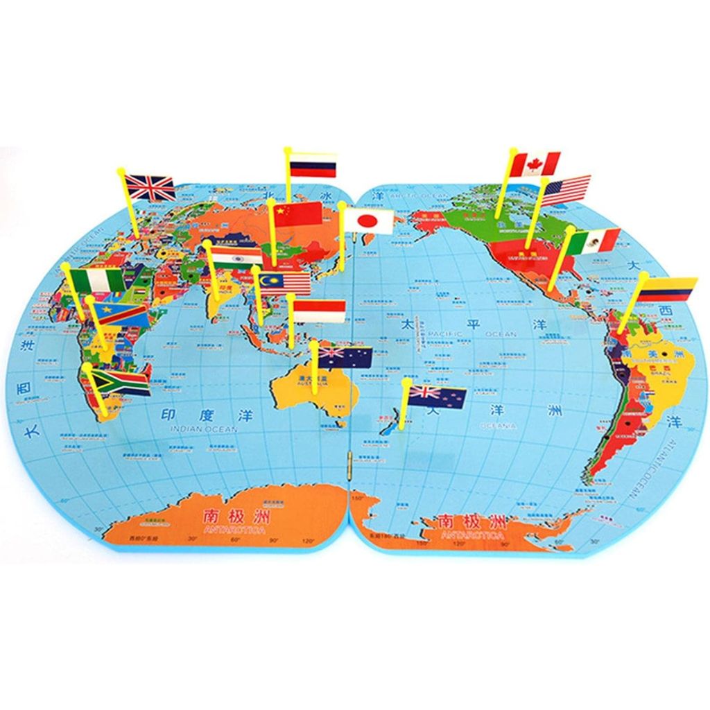Puzzzlle Carte du Monde en Bois Pliable– لعبة تعليمية للأطفال خريطة العالم