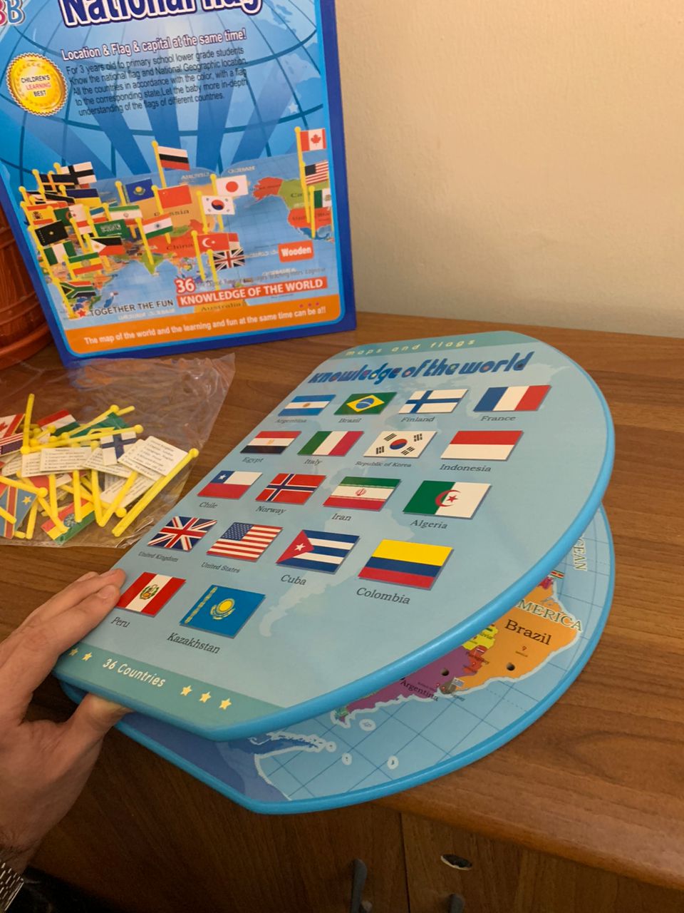 Matériau de Qualité : Fabriqué en bois durable, offrant une sensation tactile agréable et une longue durée de vie.Design Pliable : Facile à ranger et à transporter, idéal pour une utilisation à la maison ou en classe.Éducatif et Interactif : Aide les enfants à apprendre les pays, leurs capitales et leurs drapeaux, tout en développant leur coordination œil-main.Jeu de Société : Peut être utilisé comme plateau de jeu interactif, favorisant l'apprentissage collaboratif et le développement des compétences sociales.Dimensions Approximatives : [Insérer les dimensions si disponibles], adaptées aux enfants pour une manipulation facile.