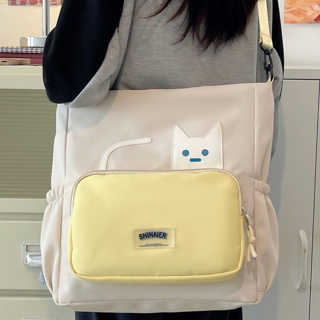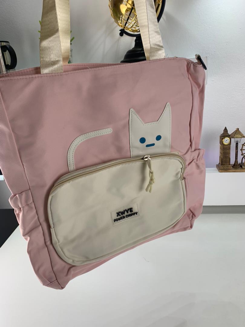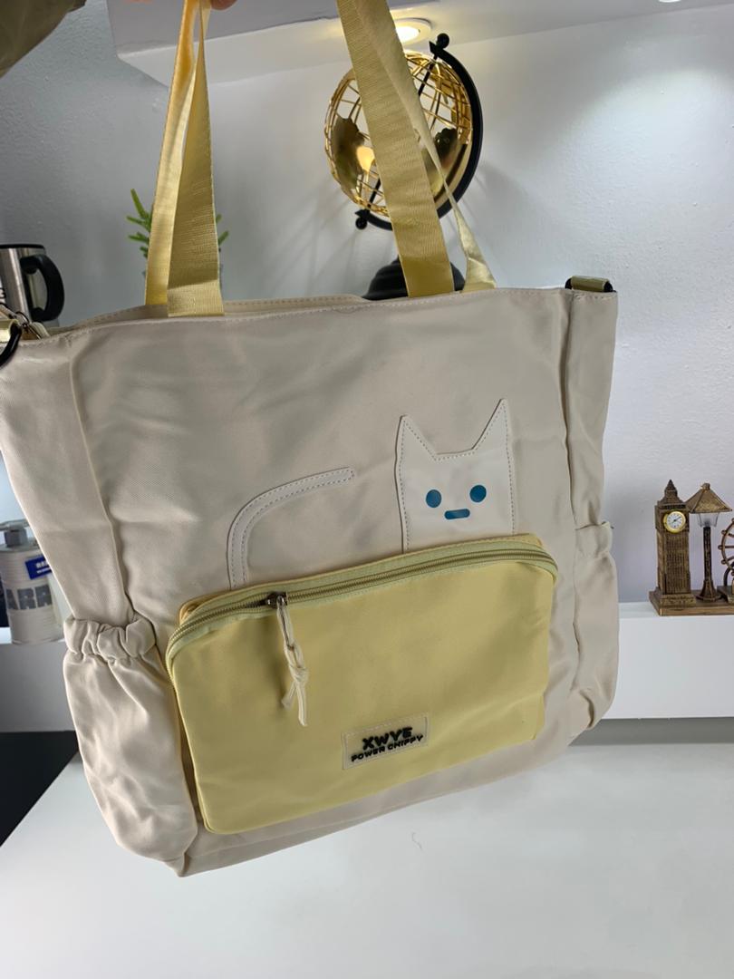 Grande Capacité – سعة كبيرة : Ce sac offre un espace généreux pour transporter vos effets personnels, idéal pour le shopping, le travail ou les sorties quotidiennes.Matériau Résistant – مادة متينة : Fabriqué en nylon imperméable et résistant à l'abrasion, il assure une durabilité accrue et protège vos affaires des intempéries.Design Original – تصميم أصلي : Son motif de chat unique ajoute une touche de style et de personnalité, faisant de ce sac un accessoire de mode distinctif.Polyvalence – متعدد الاستخدامات : Parfait pour diverses occasions, que ce soit pour une utilisation quotidienne, des voyages ou comme sac de courses.Confort de Port – راحة في الحمل : Les anses robustes et confortables permettent un transport aisé, même lorsque le sac est chargé.