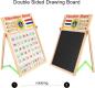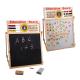 Se compose de deux côtés de tableau noir: tableau blanc et tableau noir.Équipé d’un boulier pour apprendre et compter.Livré avec craie et gomme.Le tableau blanc peut être écrit avec des marqueurs ou attaché avec des chiffres/lettres magnétiques.Le tableau noir peut être écrit avec des craies.Type: jouet de tableau noirMatériau: bois